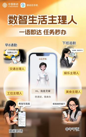 不必复杂操作,无需手动切换多个 APP,一句话就能唤起多种应用调度服务,这就是中国移动 AI 云手机,如同一位贴心的数智生活主理人,满足全天候多场景的智能服务需求。