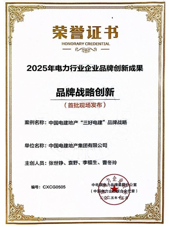 经过3个月严格评审,中电联从全国500余项品牌创新申报成果中遴选出6大类90项标杆案例,中国电建地产“三好电建”品牌战略经集团总部推荐参选,凭借“好房子、好服务、好社群”三位一体的创新实践,从众多品牌中脱颖而出,成功入围“品牌战略创新”类优秀成果名单。