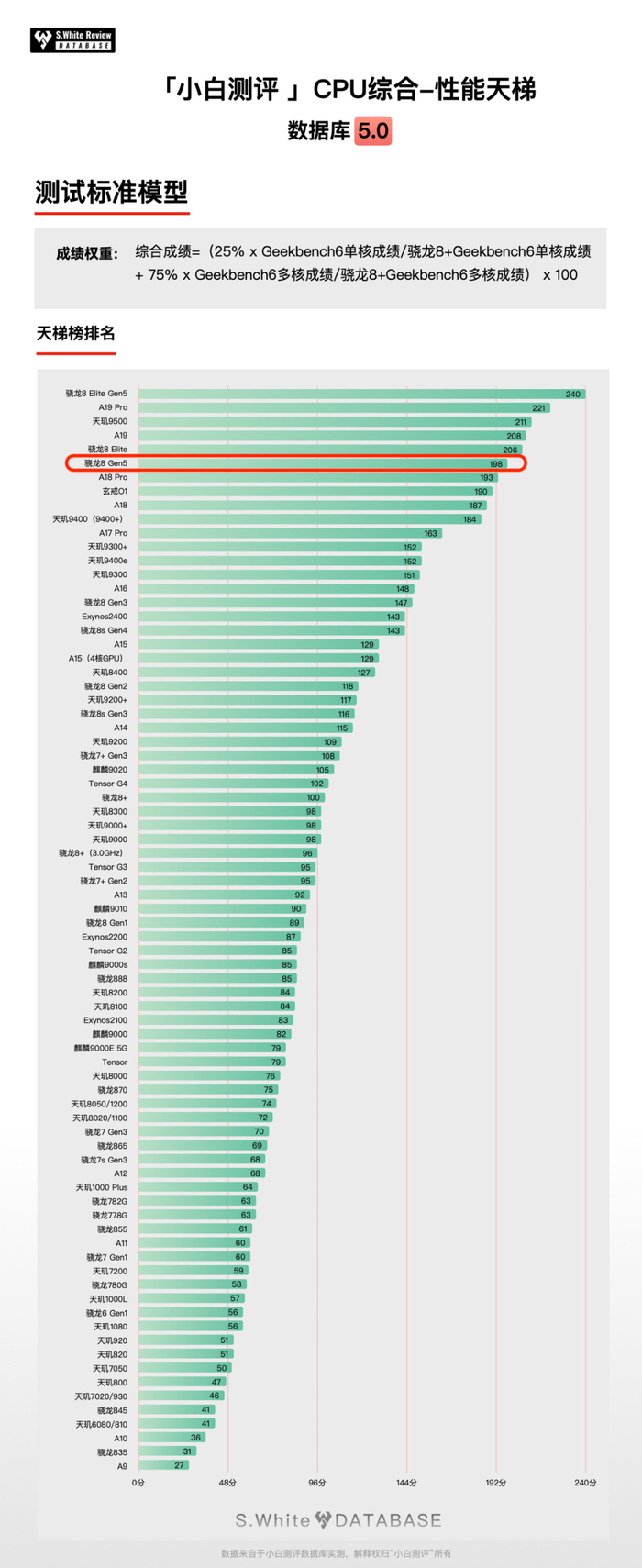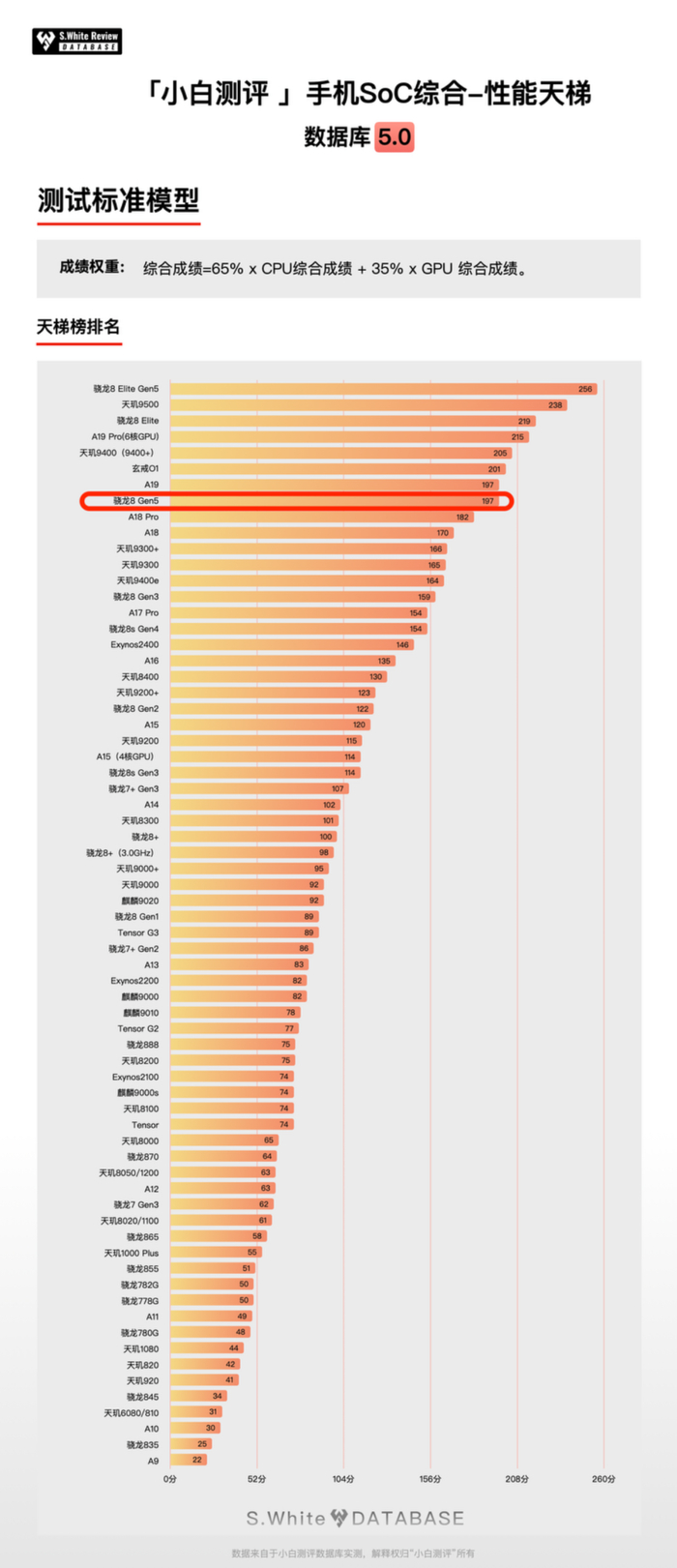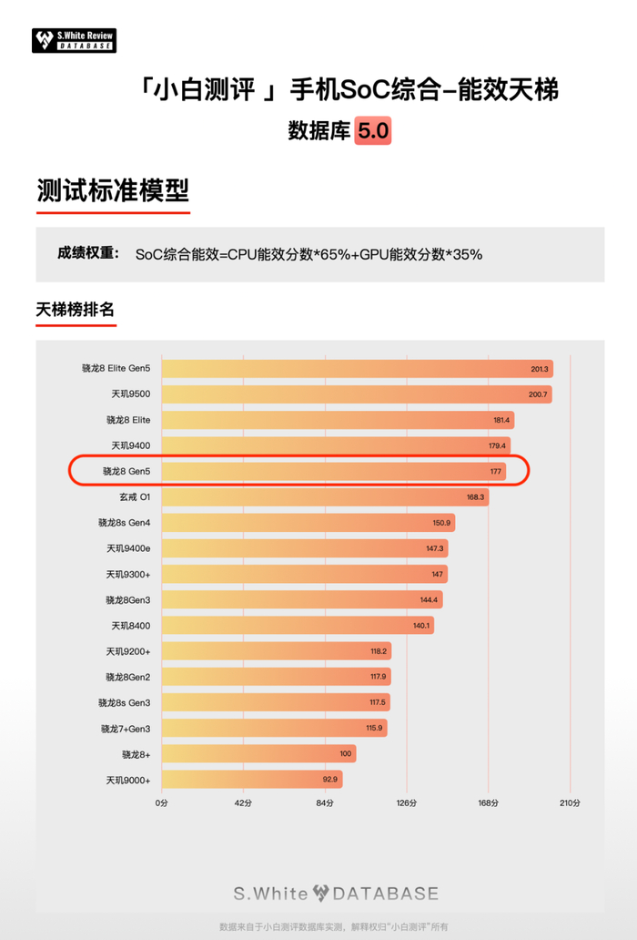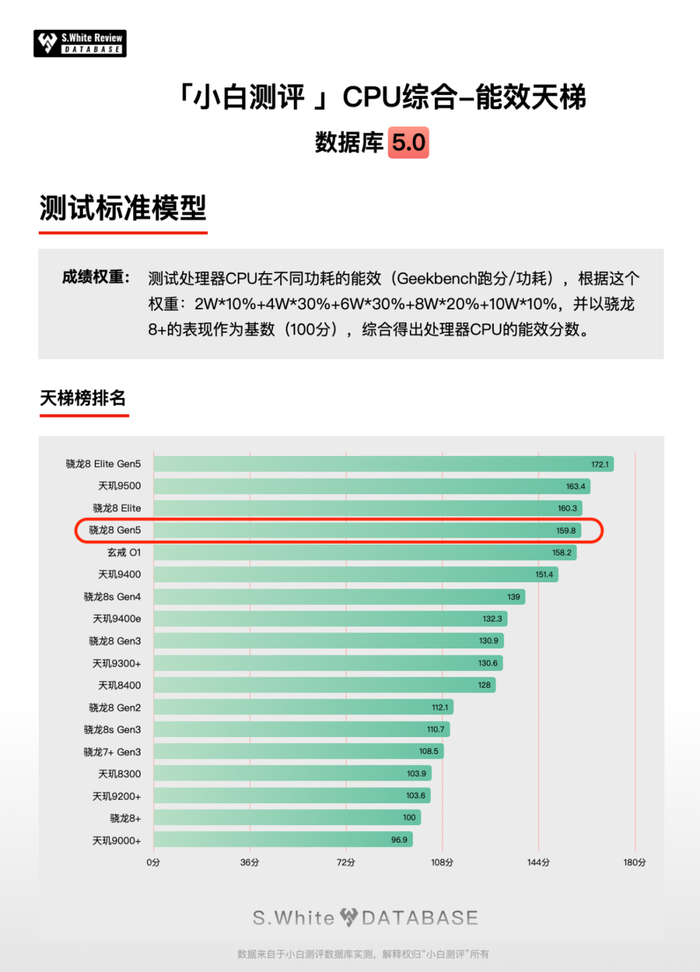 总体上,骁龙8 Gen5在日常使用场景,性能和能效两方面表现不错,像是骁龙8 Elite Gen5的青春版。大家可以到小白测评数据库可以查看更多。<详细测试标准查看《数据库测试标准手册5.0》>