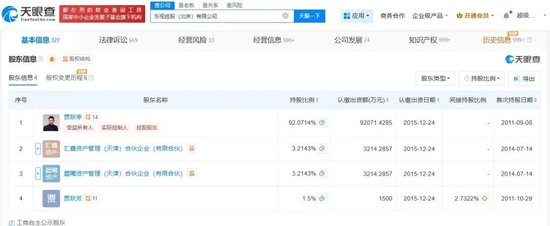 股东信息显示,该公司由贾跃亭、汇鑫资产管理(天津)合伙企业(有限合伙)等共同持股。