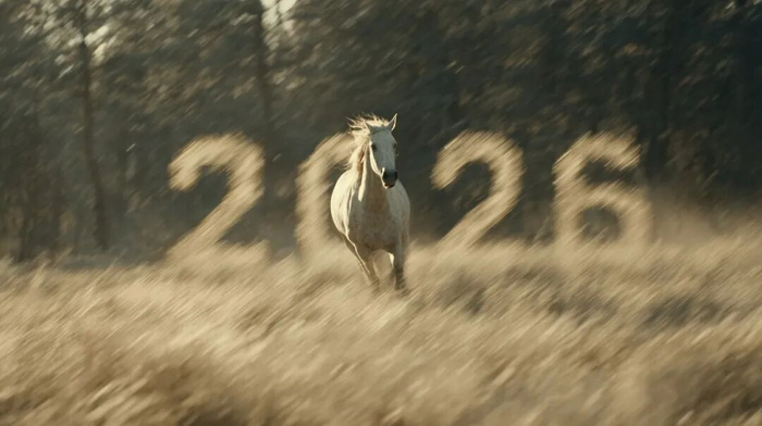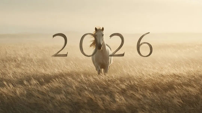 Prompt: a green field with the word '2026' written in large letters, seen from above, surrounded by a bright light and surrounded by wheat fields. And an elegant white horse galloping across wheat fields.the style of the work is characterized by realistic details, atmospheric lighting effects, and cinematic visuals, reminiscent of the style of director paul verhoeven. --ar 16:9 --p --exp 30 --v7.0