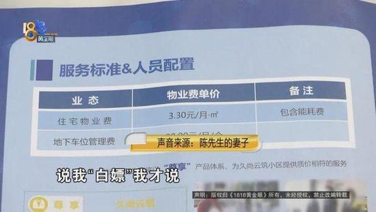 陈先生的妻子:我们同意啊,司法怎么判我们怎么付,我们从来没说不付钱,而且他们物业还说这个公共区域我们不能放东西,不能走,那我还不能走了,我是买房子,我是业主,我现在就被它搞得我饭也吃不下,而且我不知道他们还会做出什么激化的事情出来。
