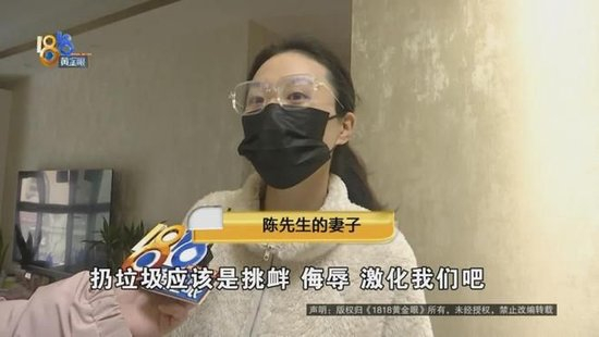 陈先生的妻子称扔垃圾应该是想挑衅、侮辱、激化他们