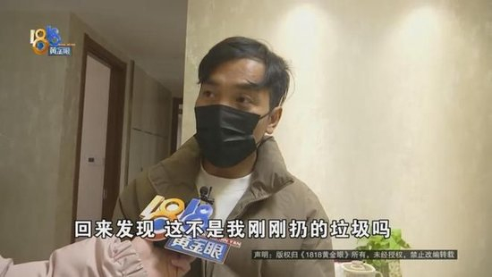陈先生:(晚上)九点半之前吧,我把我家的厨房垃圾都收拾好了,就家里的生活垃圾,我就正常地下去扔垃圾。当时有几个保安坐在那里,他说大哥,你的物业费赶紧缴一下。后来我出去转了一圈,回来发现,这不是我刚刚扔的垃圾吗,怎么全部给我拎回来了?