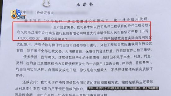 让老板签下了承诺书,说是“鉴于公司生产经营需要,公司要求李先生以分包工程分包人名义,向浙江海宁农村商业银行股份有限公司城北支行申请借款人民币300万元。