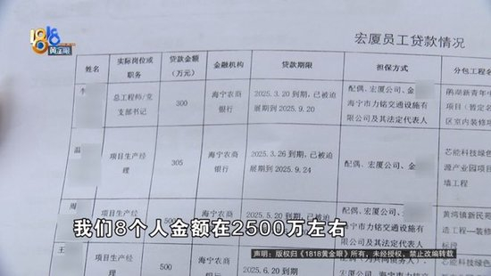 2024年3月,他又在海宁农村商业银行贷了300万,保证人是浙江宏厦建设有限公司,周期一年,每月还16000多元。