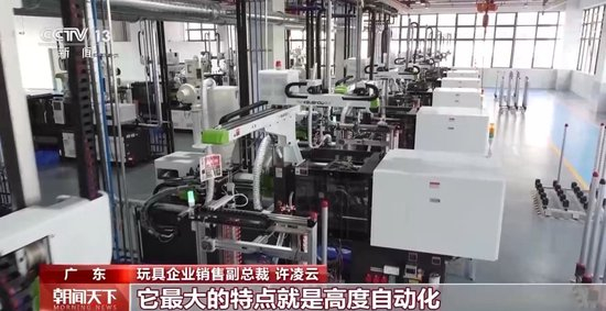 玩具企业销售副总裁 许凌云:它最大的特点就是高度自动化、智能化、无人化,每一台的注塑设备现在的产能是75000个左右,传统的工厂每天只能做到50000个左右。瑕疵率从原来的5%至10%,降低到了1‰。