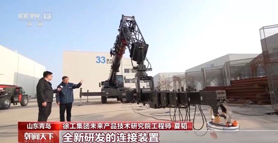 徐工集团未来产品技术研究院工程师 夏韬:这是我们专门为摄影装备全新研发的连接装置,我们在这一级又增加了第二级的变幅和回转运动,就形成了多自由度的运动方式,可以实现整个运动画面很丰富的状态。
