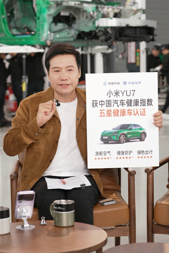 雷军还表示,因为大家买YU7多半是家庭,特别担心小朋友的健康,YU7在设计的时候就考虑了家庭的需求。所以在健康这一点上,考虑了父母的想法,考虑到孩子的需求。他表示,小米获得了五星健康车的荣誉,在清新空气、健康防护、绿色出行方面都获得了五星标准。(罗宁)